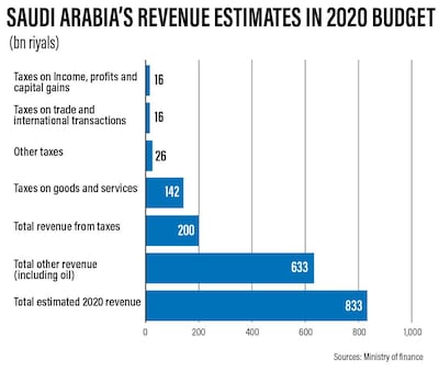 Saudi Arabia’s non-oil revenue largely consists of taxes and duties which range from customs fees on international trade transactions to consumption taxes and the levies expats pay to sponsor their families in the kingdom. Saudi Arabia expected to generate 200 billion riyals (Dh195.8bn) in total from all taxes this year, according to the kingdom’s 1.02 trillion riyal 2020 budget document released in January.