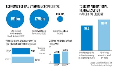 Pilgrims usually arrive several days in advance and often stay on for a week or more, generating around $8bn (Dh29.4bn) in revenue, according to a 2018 report by the international body of accountants, Acca. The numbers make the Hajj Saudi Arabia's second-largest income earner after hydrocarbons.