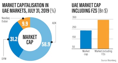 The UAE’s three stock markets – the Abu Dhabi Exchange, the Dubai Financial Market and Nasdaq Dubai, have a total of 175 listed companies, with a combined market capitalisation of $230.6bn, or Dh846.8bn (as of 31 July), resulting in an equity to GDP ratio of 62.6 per cent. The markets are dominated by domestic retail investors but a number of measures can be taken to make them more dynamic and help further enable a transformation of the UAE into a more well-diversified, modern economy able to innovate and adapt to rapid technological change: