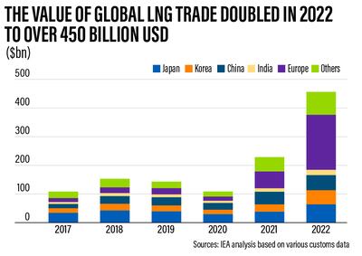 LNG global trade reached an “all-time high” of $450 billion in 2022 amid a surge in European demand as the region reduced its reliance on Russian gas imports, the IEA said.