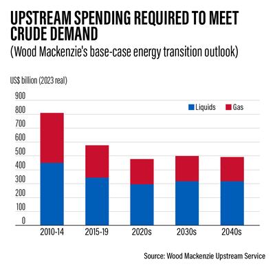 The annual oil and gas investment does not need to rise substantially from current levels of $500 billion to meet peak demand in the 2030s, according to Wood Mackenzie.
