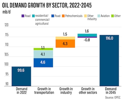 Opec’s share of global crude supply will increase to 40 per cent by 2045, from 34 per cent last year, it said.