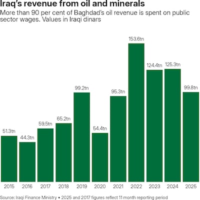 Iran-backed armed groups are already fuelling unrest in Iraqi cities, protesting against US and Israeli attacks on Iran. A prolonged suspension of oil revenues and any delay in paying monthly public sector salaries could “turn the country into a powder keg”, Mr Badawi said.