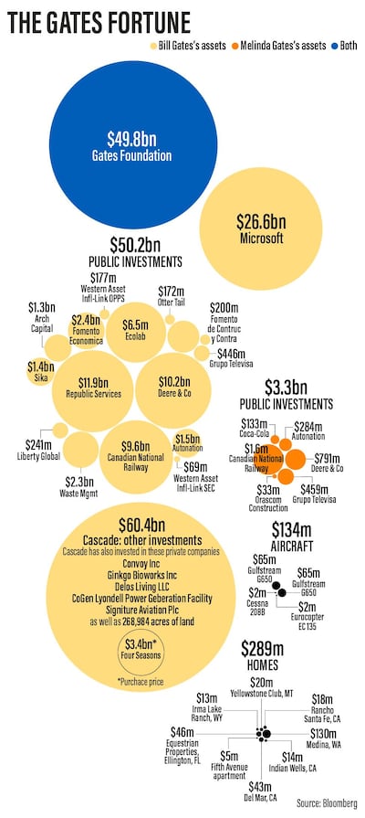 The couple have established their own philanthropic arms outside of the foundation and their interests have diverged in recent years, with Mr Gates focused on climate change and Mrs Gates on gender equality.