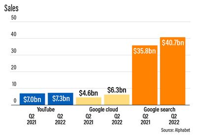 Google services business — which includes advertisements, Android, Chrome, hardware, Maps, Search, Google Play and YouTube — accounted for more than 90 per cent of the company’s total sales. It added $62.8bn to overall revenue, almost 10.1 per cent more than the second quarter of 2021.