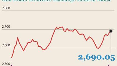 The Abu Dhabi Securities Exchange General Index rose 0.4 per cent to 2690.05 points, led by ADCB. The Abu Dhabi lender rose 3.6 per cent Dh3.14, shares have risen TK per cent so far this week as the bank proceeded with the sale of its 25 per cent stake in Malaysia's RHB.