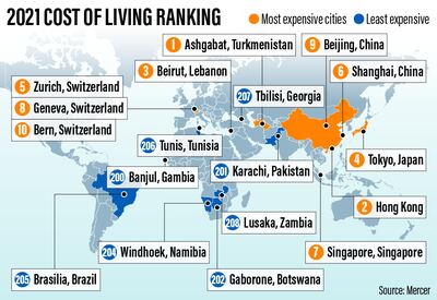 Ashgabat, the capital of Turkmenistan, Hong Kong and Beirut are the three most expensive cities in the world for overseas workers in 2021, the survey found