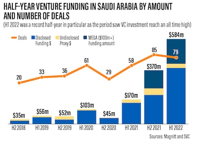 The 244 per cent jump in total VC funding in the Arab world's biggest economy through the end of June 2022 resulted in investments that were 8 per cent higher compared to 2021's total, backed by a record 88 investors who funded Saudi start-ups, according to start-up data platform Magnitt's Venture Capital Report in collaboration with Saudi Venture Capital (SVC).