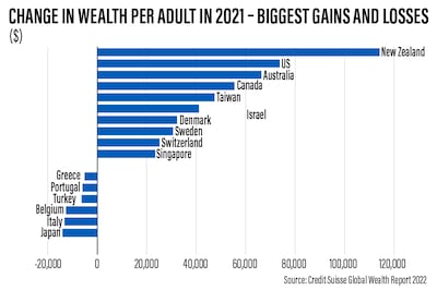 “Wealth losses were less common and almost always associated with currency depreciation against the US dollar,” said Anthony Shorrocks, economist and author of the Global Wealth Report 2022.