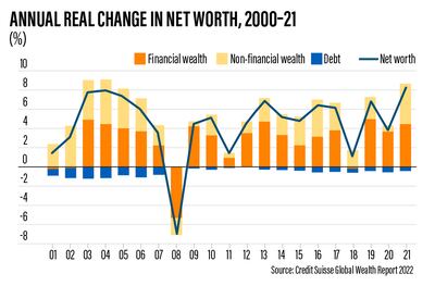 Setting aside exchange-rate movements, aggregate global wealth grew by 12.7 per cent in 2021, which is the fastest annual rate yet recorded, the bank said in its Global Wealth Report 2022, which analysed the household wealth of 5.3 billion people.