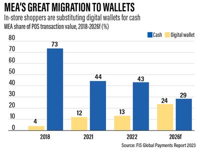 Meanwhile, the MEA also recorded a dramatic decline in the use of cash at POS transactions, falling to 43 per cent last year from 73 per cent in 2018, the report found. It projected that the share of cash transactions would fall to just 29 per cent by 2026.