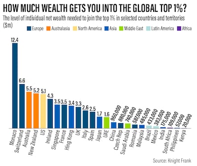 You will need a net worth of $1.6 million to join the UAE’s richest 1 per cent, according to global property consultancy Knight Frank.