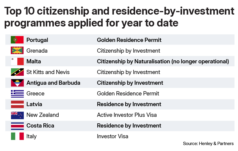Spain stopped its golden visa programme in April, while Malta stopped its CBI scheme in July and introduced a citizenship-by-merit pathway. Immigration agents also report an increase in prices for RBI programmes in Portugal, Greece and Hungary.