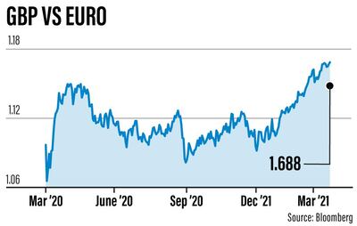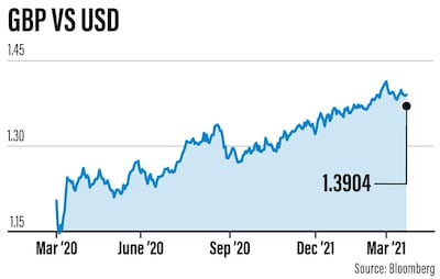 Sterling is benefitting from optimism around Britain's rapid vaccine distribution and there are hopes it will help the economy reopen much faster, leading to a sharp rebound from the 10 per cent contraction in output last year – the worst in 300 years.