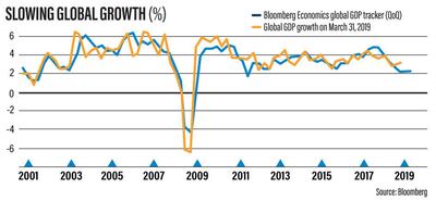 There will certainly be discussions this week at the International Monetary Fund’s annual meeting in Washington. Bloomberg Economics’ global GDP tracker shows the pace of expansion has slowed to 2.2 per cent in the third quarter, down from 4.7 per cent at the start of 2018.
