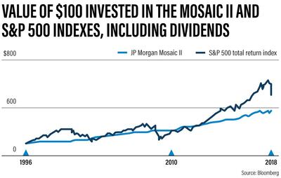 Between 1996 and 2018, $100 (Dh367) invested in the S&P 500 plus reinvested dividends could have returned retirement savers almost $1,000 more than the proprietary index. Run the chart into 2019, and the S&P 500 beats the Mozaic II by even more.