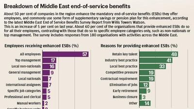 For the past seven years, Willis Towers Watson (WTW) has surveyed companies across the Middle East to assess trends in end of service benefit (ESB) payments in the region. The 2016 survey, which included responses from 180 organisations, has just been released and reveals that enhanced end of service benefits are on the rise with 49 per cent of companies offering them this year, as opposed to 45 per cent in 2015. Michael Brough, director and international benefits specialist at WTB in the Middle East, speaks about issues related to end of service benefit in the UAE, including why we should be concerned about the way companies manage their liabilities here.
