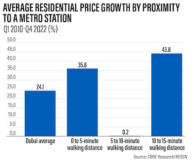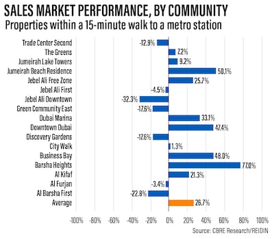 Over the same period, residential units within a 15-minute walk of a metro station recorded an average rise of 26.7 per cent, according to the CBRE report.