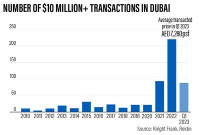 Dubai’s luxury home sales hit Dh6 billion ($1.63 billion) in the first quarter of 2023, with wealthy buyers snapping up 88 units valued at more than $10 million as prime property sales continued to pick up amid a wider economic recovery.
