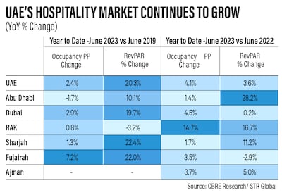 In the year to June, the average hotel occupancy rate in the UAE rose by 4.1 percentage points while the average revenue per available room, a key gauge of performance for the hotel industry, increased 3.6 per cent on an annual basis, CBRE said.
