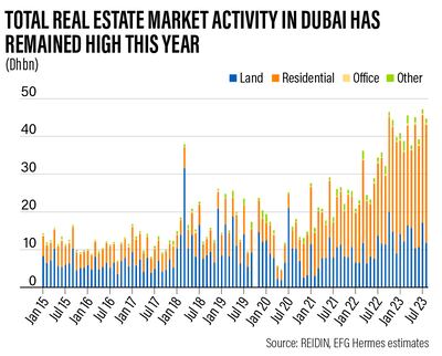 Overall, total transactions in Dubai's real estate market rose nearly 25 per cent annually to Dh44.67 billion in August, the EFG report said.