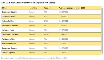 Homes in the most expensive streets are about 72 times more expensive than the average UK home.