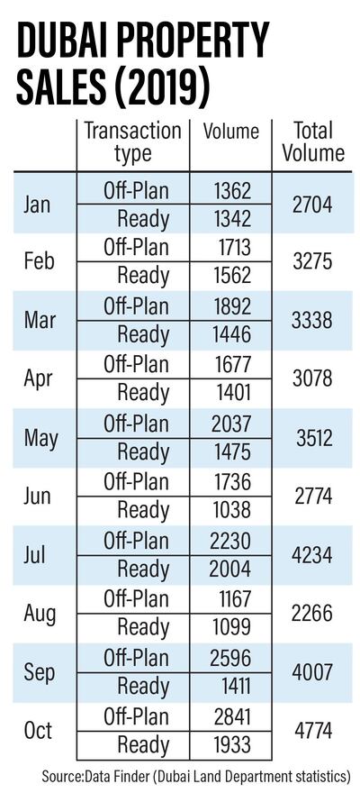 Last month also hit a 2019 record for off-plan sales, clocking in 2,841 transactions, the second-highest since September 2015, with 3,258 deals recorded.