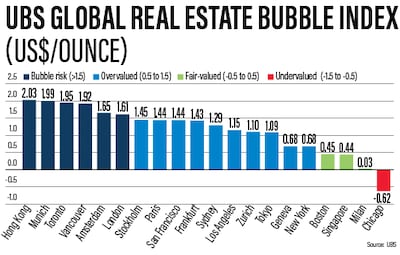 Hong Kong is the most overvalued housing market this year with significant price bubbles also found in the majority of the world's developed financial centres, a new study from the Swiss Bank UBS found.