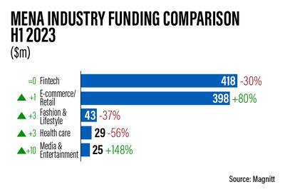 The three large financing rounds made FinTech and e-commerce/retail the top two Mena sectors by investments, followed by transport and logistics, software and media and entertainment sectors.