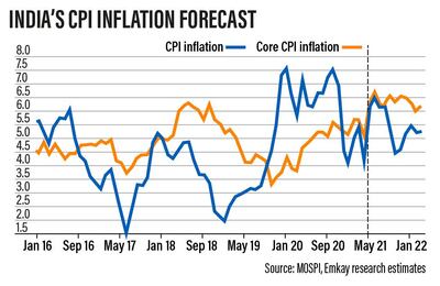 The government may “need to take suitable measures to control inflation of food products such as edible oils and pulses as well as retail fuels to mitigate any longer-term structural risks to inflation”, he says.