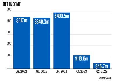Zoom Video Communications’ shares fell more than 8 per cent in after hours trading on Monday after the company reported an 86 per cent drop in its fiscal second-quarter net income.