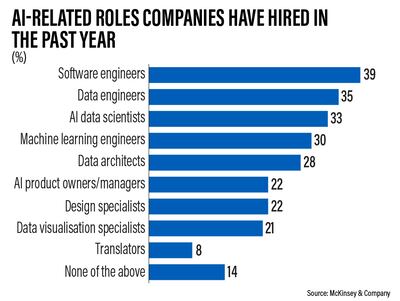 Software engineers were the top hires in the past year at 39 per cent of enterprises, beating even data engineers (35 per cent), AI data scientists (33 per cent), machine learning engineers (30 per cent) and data architects (28 per cent), it said.