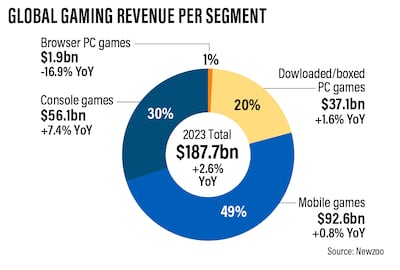 The revenue surge will be dominated by mobile games, which are seen to marginally grow 0.8 per cent and account for $92.6 billion, or nearly half of all revenue, this year, the Amsterdam-based company said.
