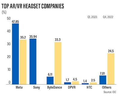 Meta occupied a 50.2 per cent market share during the June quarter, followed by Sony (27.1 per cent) and ByteDance (9.6 per cent), according to IDC.