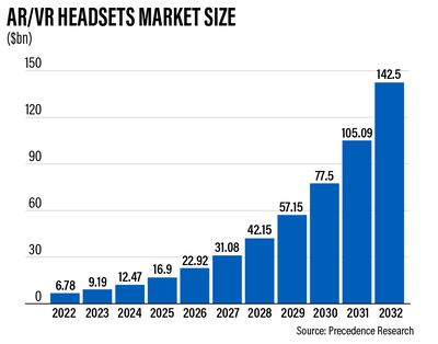 The global AR and VR headsets market is expected to reach $142.5 billion by 2032, from $6.8 billion last year, growing at a compound annual growth rate of 35.6 per cent, according to market researcher Precedence Research in Ottawa.