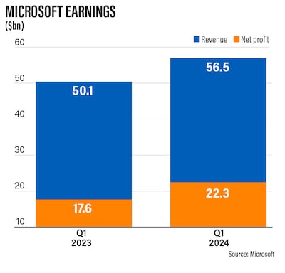 Microsoft last week reported its third-quarter net profit surged 27 per cent to $22.3 billion, triggering a rally in its share price as it beat Wall Street estimates.