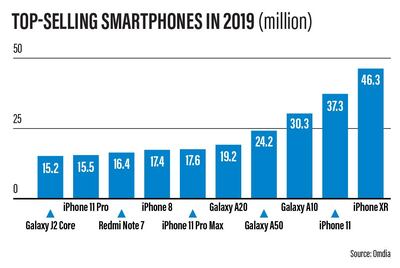 Apple's iPhone XR, which retails from Dh2,000, was the best-selling smartphone of 2019, according to the technology researcher Omdia.