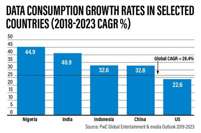 Indians consume the most data per month globally, at an average of 9.8GB, which is expected to almost double to 18GB per month by 2024 due to “attractive data plans being offered by service providers and young people's changing video viewing habits”, according to a report by Swedish telecom firm Ericsson. Once 5G launches in India, that will also help to propel this trend.