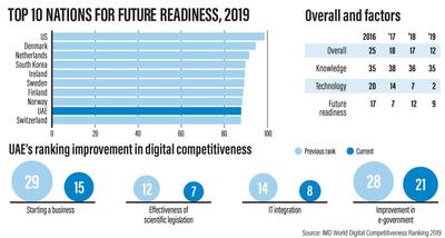 The UAE rose in all three ranking criteria, indicating an improvement in its future readiness at 9th place from 12th, according to IMD.