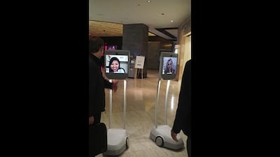Designed by Suitable Technologies, it is about 5 foot tall, has two high-definition cameras, six microphones, speakers, wi-fi and LED lamps.