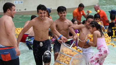Children made a splash at Yas Waterworld when they took part in the annual Charity Duck Race. All proceeds raised from the race in the park’s Yadi Yas River were donated to the Make A Wish Foundation UAE. All photos by Satish Kumar / The National