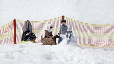 Nouri, from Saudi Arabia, is sledding with her sons and enjoys the experience more than her children.