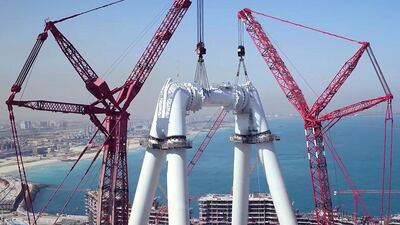 Ain Dubai, which is taking shape on Bluewaters Island in front of the Jumeirah Beach Residence coastline, has had its hub and spindle lifted into place, creating a new feature on Dubai’s dramatic skyline.