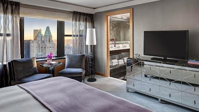 Along with more standard luxury amenities (a private rooftop terrace, sweeping views of the Manhattan skyline), the Jewel Suite comes with a complimentary Diamond Microband Ring, valued at $2,500, that the guest can customise in a private meeting with Martin Katz himself.