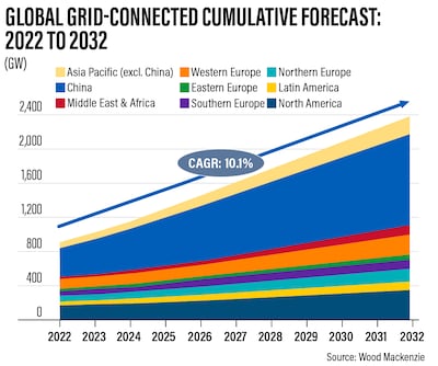 In the Middle East and Africa, wind power capacity will grow 24.1 per cent annually, the fastest rate in the world, to reach 89,000 megawatts by 2032, the report said. Latin America is expected to record 7.9 per cent annual growth during the period.