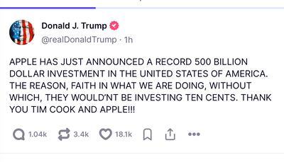 "In return, Apple could get tariff exemptions and other favorable treatment from the administration. Apple did something similar in 2020, when they let Trump take credit for an Apple factory that opened in 2013."