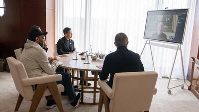 In a photo posted on X, Sheikh Tahnoon can be seen with G42's group chief executive Peng Xiao, talking to Mr Musk on a video monitor.