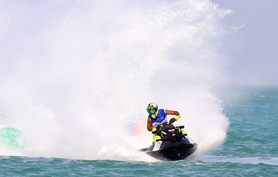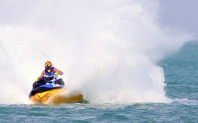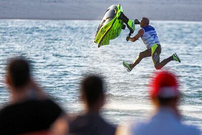 UAE's Rashed Al Mulla performs freestyle during the UIM ABP-Aquabike World Championship in Kuwait City.
