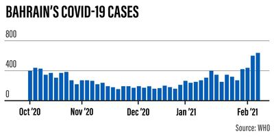 Despite efforts to curb the spread of the virus, case numbers in Bahrain increased among its 1.6 million population after infections waned towards the end of 2020.