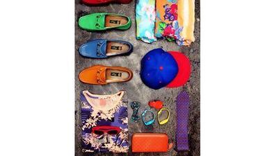 1. Loafers, Dh2,300 each, Gucci, Marina Mall, 02 681 6844; Mall of the Emirates, 04 341 0669 and elsewhere. 2. Turquoise trunks, Dh900, Vilebrequin at Bloomingdale's, The Dubai Mall, 04 350 5333. 3. Orange and red trunks, Dh605, Polo Ralph Lauren, The Dubai Mall, 04 330 8005; BurJuman Centre, 04 352 5311 and elsewhere. 4. Orange trunks, Dh775, Vilebrequin. 5. Baseball cap, Dh95, Topman, The Dubai Mall, 04 339 9802 and elsewhere. 6. Tie, Dh450, 7. Wallet, Dh1,650, both Emporio Armani, Marina Mall, 02 681 8848; The Dubai Mall, 04 339 8121 and elsewhere. 8. Watches, Dh525 each, Nixon at Bloomingdale's. 9. Bow tie, Dh95, Topman. 10. Sunglasses, Dh115, River Island, Mall of the Emirates, 04 340 9115 and elsewhere. 11. T-shirt, Dh219, Scotch & Soda, The Dubai Mall, 04 325 3327; Mirdif City Centre, 04 239 3036